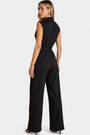Une sophistication puissante pour toute occasion. Cette combinaison redéfinit le style avec une silhouette épurée et structurée qui accentue la silhouette avec élégance. La jambe évasée et le col haut créent une présence imposante, tandis que les détails fonctionnels la rendent aussi pratique que raffinée.