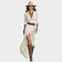 Confectionnée dans un tissu léger et fluide, elle met en valeur la silhouette avec sa coupe ajustée et son ouverture frontale. Parfaite à porter avec des bottes ou des sandales, elle est idéale pour un style sophistiqué et naturel.