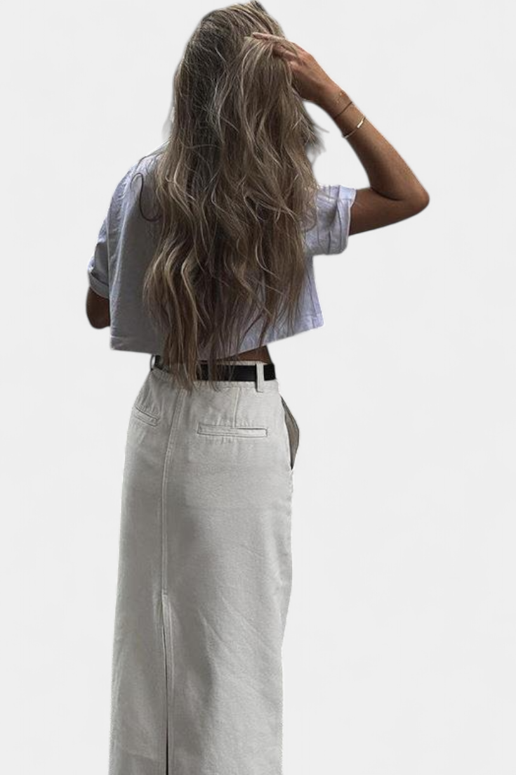 Inspirée par le charme désinvolte des rues parisiennes, la jupe Yenifer allie une coupe slim flatteuse à une fente frontale qui apporte sophistication et liberté de mouvement. Sa confection en coton avec une touche d'élasthanne garantit confort sans perdre en structure, parfaite pour des looks urbains au style élégant.