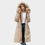 Ce manteau long pour femme avec capuche en fourrure allie élégance et fonctionnalité pour les jours les plus froids de l'année. Son design moderne avec une coupe ajustable met en valeur la silhouette, tandis que la capuche avec bord en fourrure ajoute une touche sophistiquée et chaleureuse.