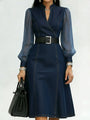 Robe en Jean Élégante avec Panneaux de Manches en Organza.